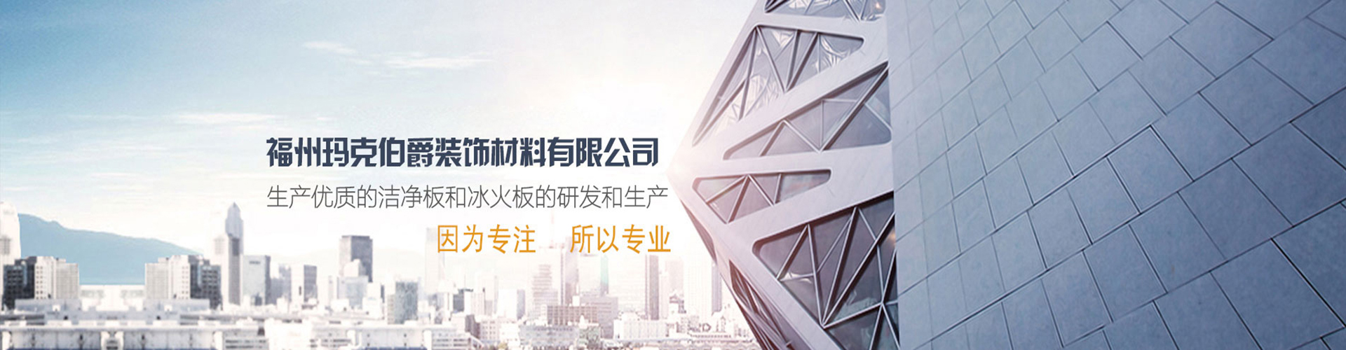 福州瑪克伯爵裝飾材料有限公司成立于2002年,是一家專業(yè)研發(fā)A級防火材料和生產(chǎn)內(nèi)外墻可替代裝飾材料的公司,主要價(jià)格生產(chǎn)各類工程裝飾用品:冰火板、醫(yī)用抗菌板、保溫一體板、隧道板等,產(chǎn)品具有防火防水、綠色環(huán)保、無毒、無煙無排放、抗菌、A級防火等多項(xiàng)技術(shù)優(yōu)勢。